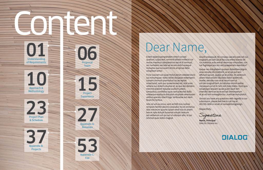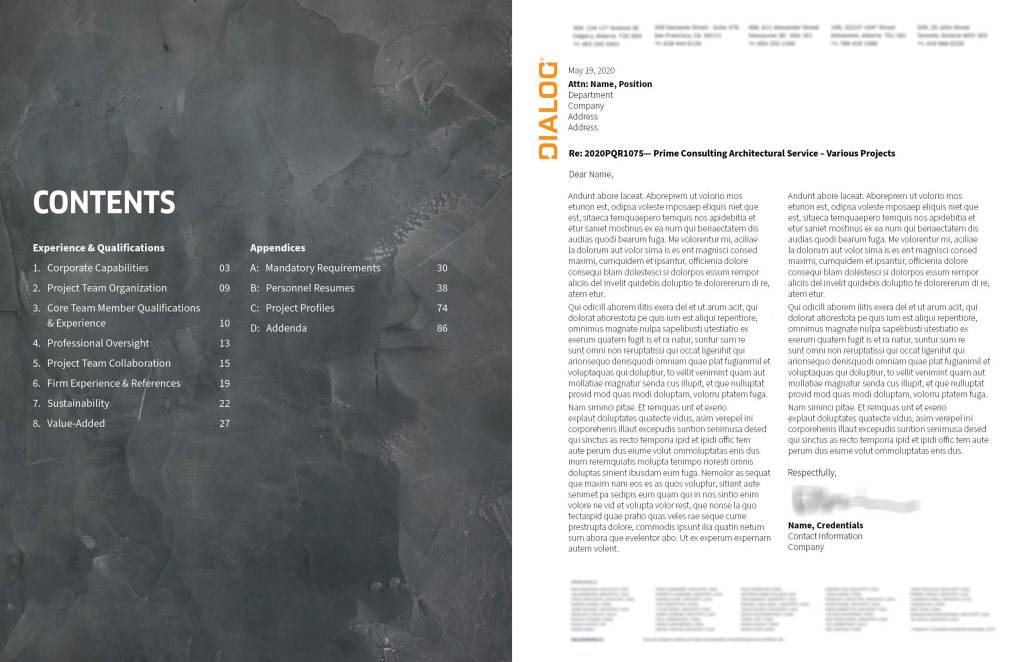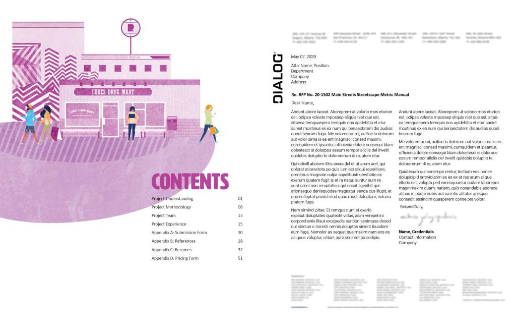 Proposal Coordination, graphic design, layout, illustrations* & digital production.